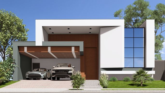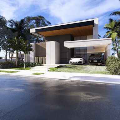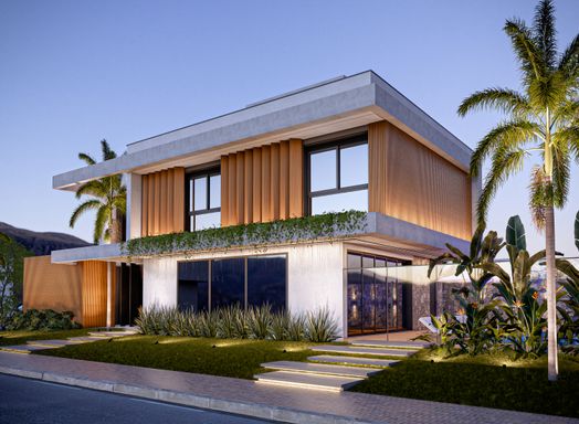 Ambientes integrados e bem ventilados, com pé-direito alto que proporciona imponência e amplitude Pedras naturais e paisagismo sofisticado valorizam o conceito arquitetônico e a elegância da fachada Área de lazer completa: espaço gourmet, piscina