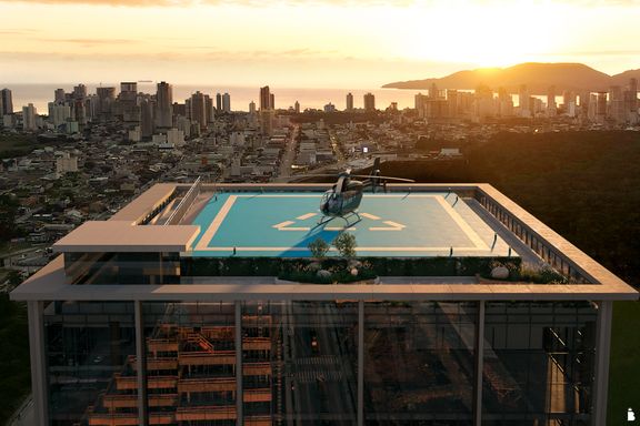 Heliponto no topo, rooftop com mezanino, auditório para 300 pessoas, podcast, salas comerciais