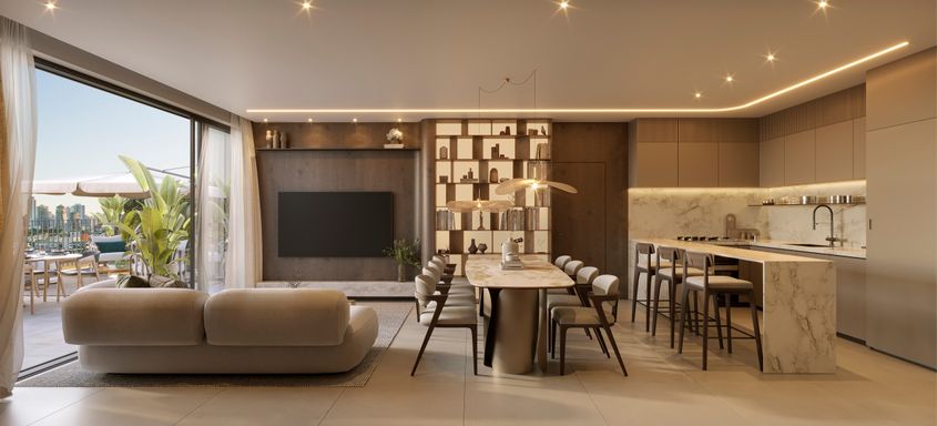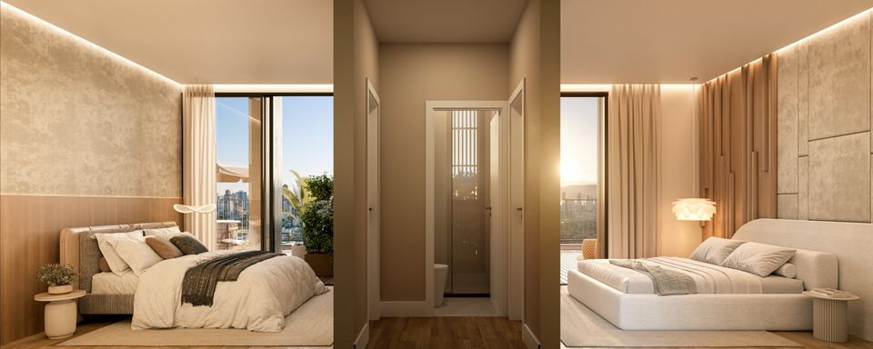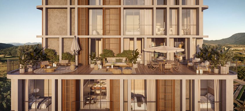 2 torres, 7 salas comerciais, 6 pavimento de garagem, demi-suítes, banho demi-suíte, living integrado, garden.